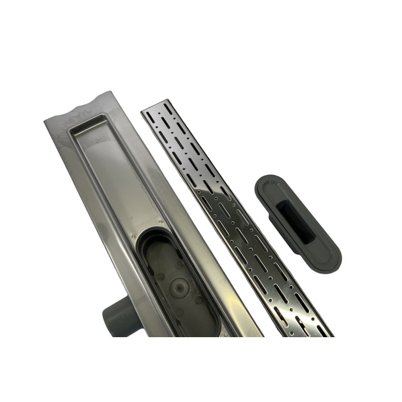 Высококачественная сталь марки AISI 304. Горизонтальный фланец. Двойной гидрозатвор. Душевые лотки готовы удивлять своей функциональностью и практичностью. Доступны в размерах 60 см в стиле дождя. Одно из важных преимуществ, которое следует упомянуть: возможность регулировки высоты решетки даже после установки душевого лотка! Вы можете обратиться к нам, чтобы получить больше технических деталей. Душевой канал с горизонтальным фланцем, решетка "Дождь"