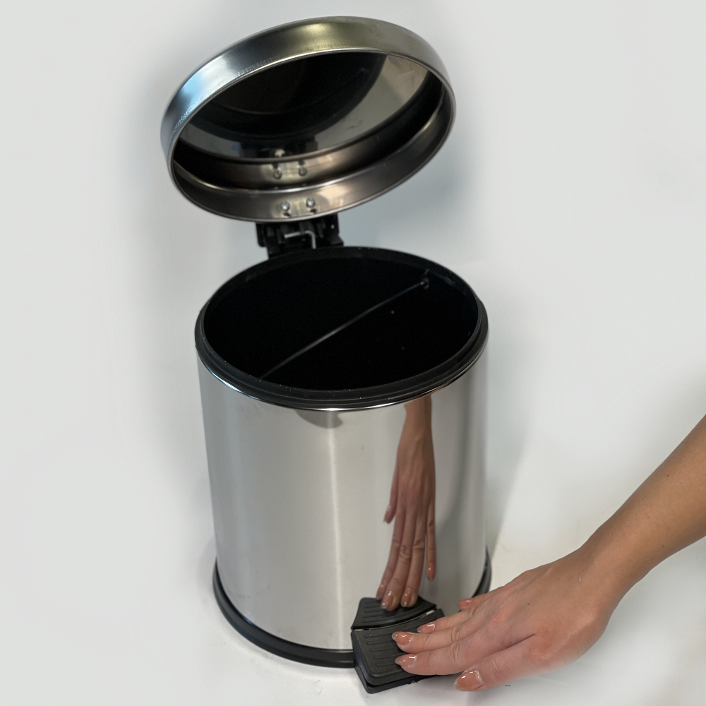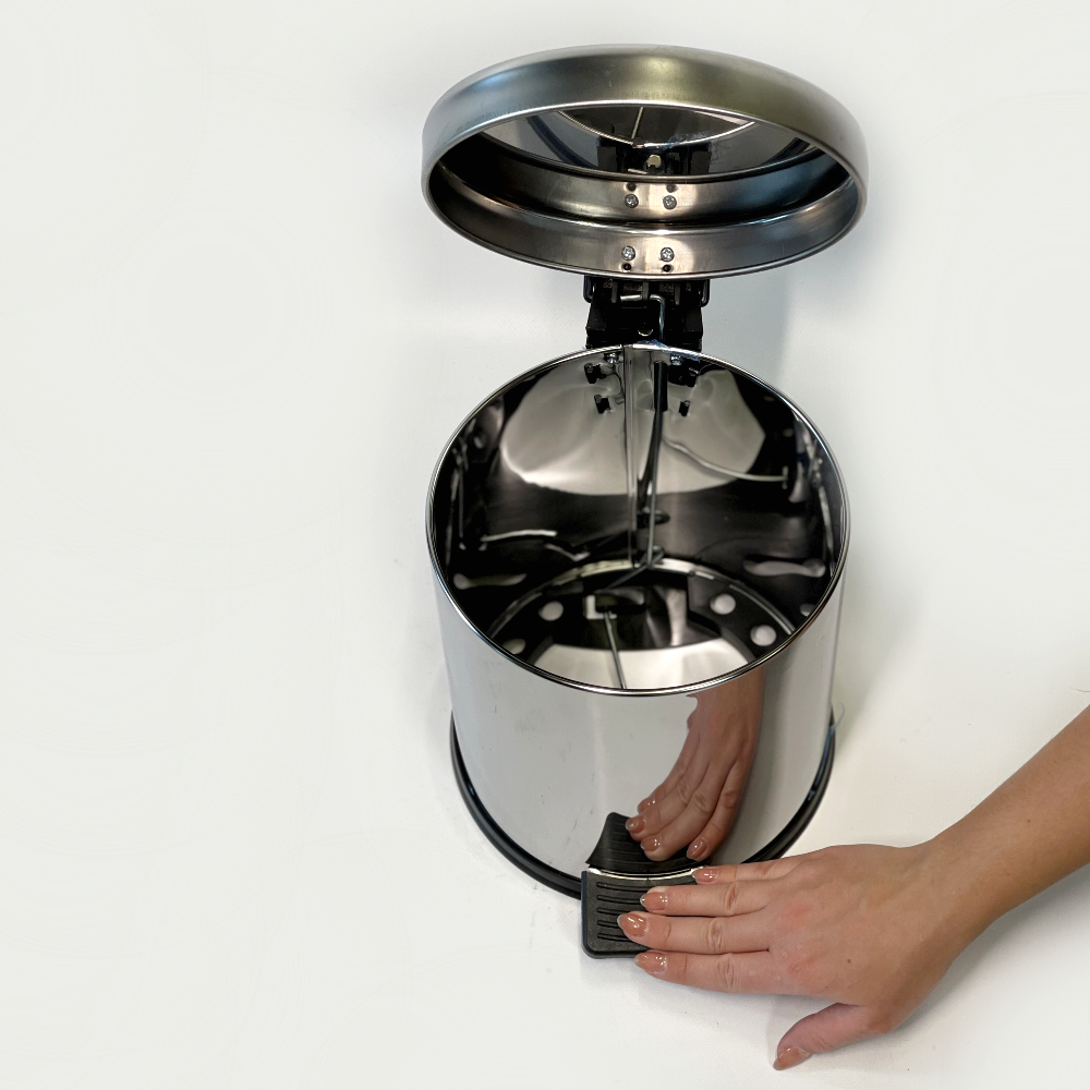 Мусорное ведро с педалью на 5 литров из нержавеющей стали 26см, диаметр 21 см с микролифтом
