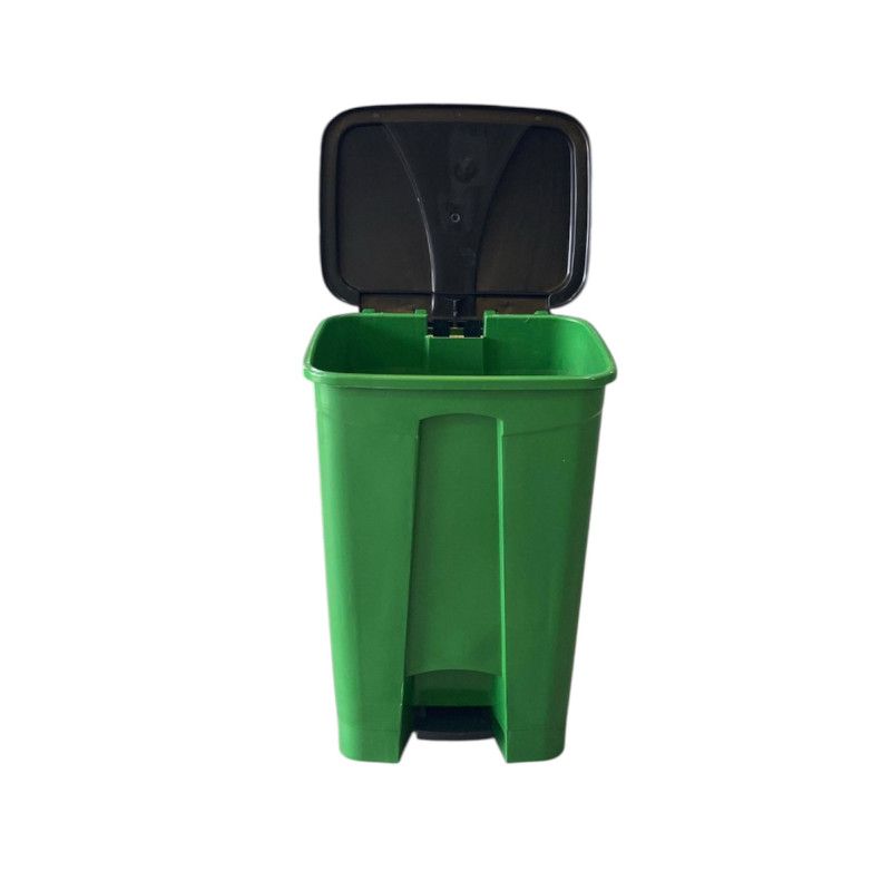 Мусорный бак с педалью на колесах 85 л (зеленый, серый) – практичный контейнер для сбора отходов в доме, офисе, на складе, в медицинских и производственных помещениях. Благодаря педальному механизму крышка открывается без контакта руками, что обеспечивает гигиеничность и удобство в использовании.