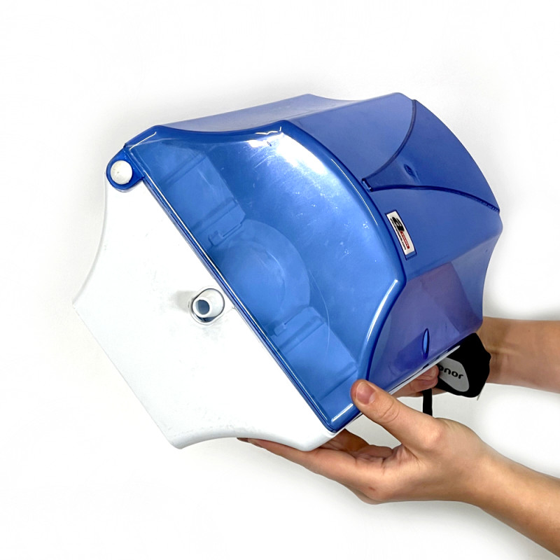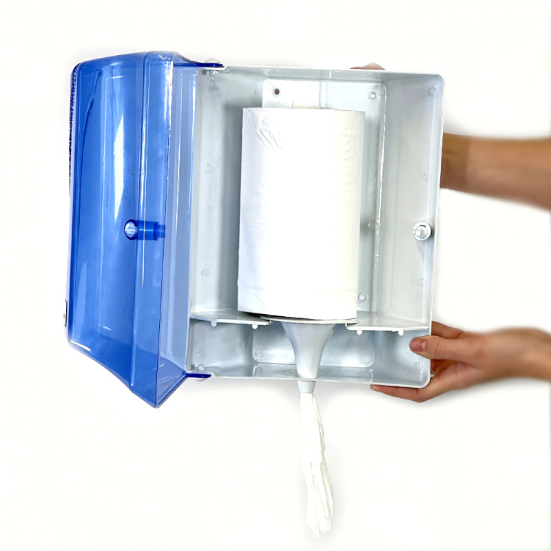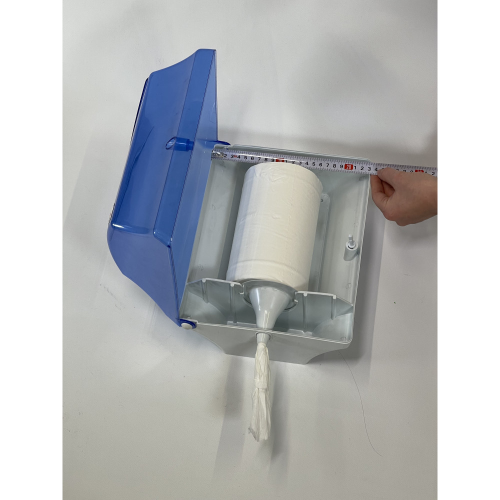 Диспенсер для бумажных полотенец в рулонах нижним вытяжением (Прозрачный голубой)