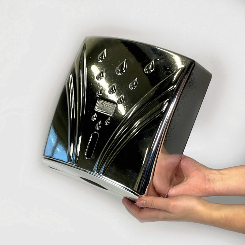Выполнен из ABS пластика. Размер диспенсера и цветовое исполнение легко спишется в любой интерьер. Подходит для общественных мест и частных домов.