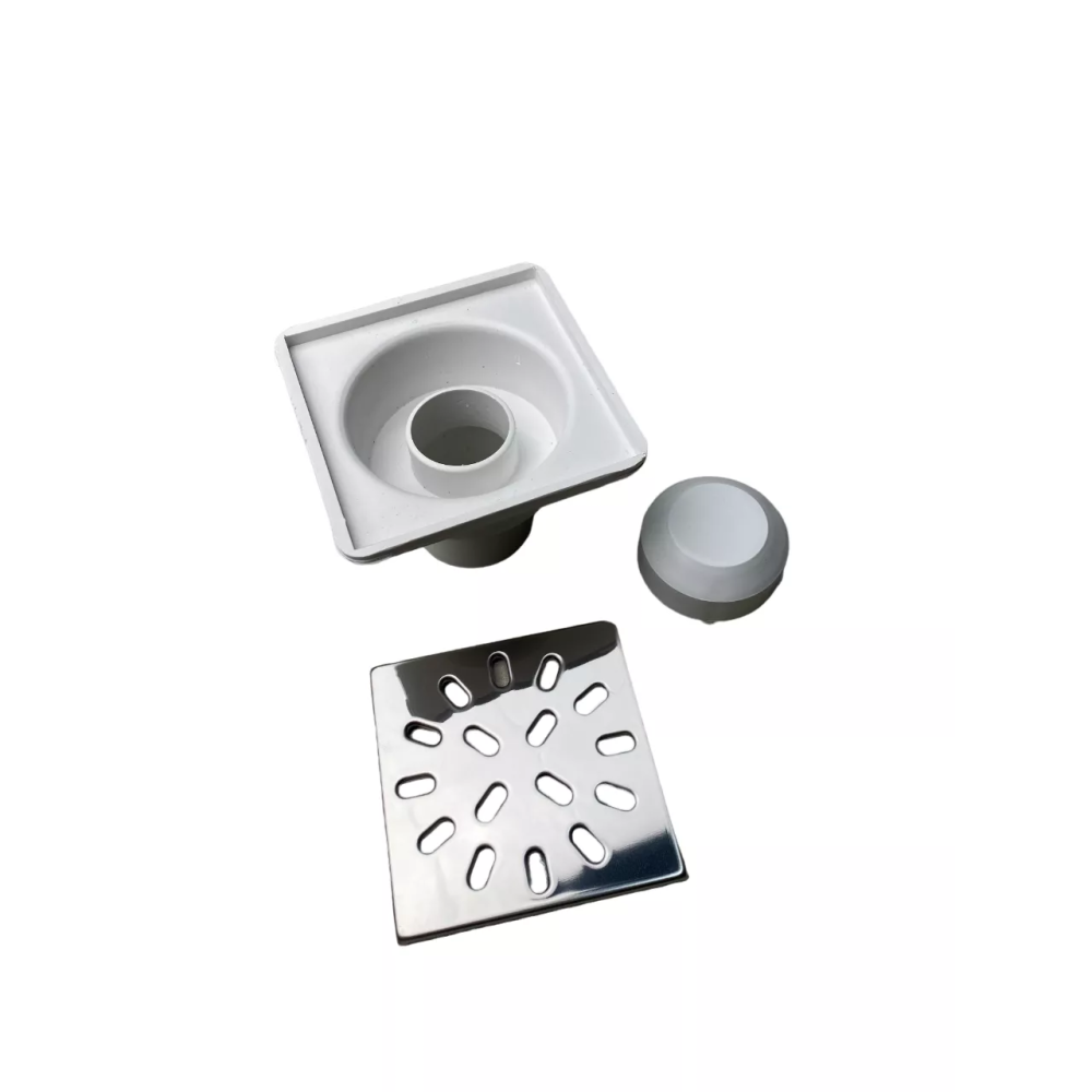 Shower drain vertical D50 stainless steel grate 150x150 hydrobarrier