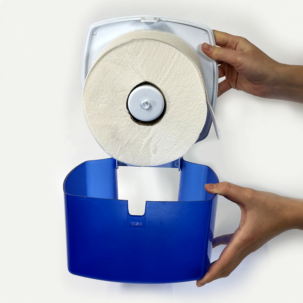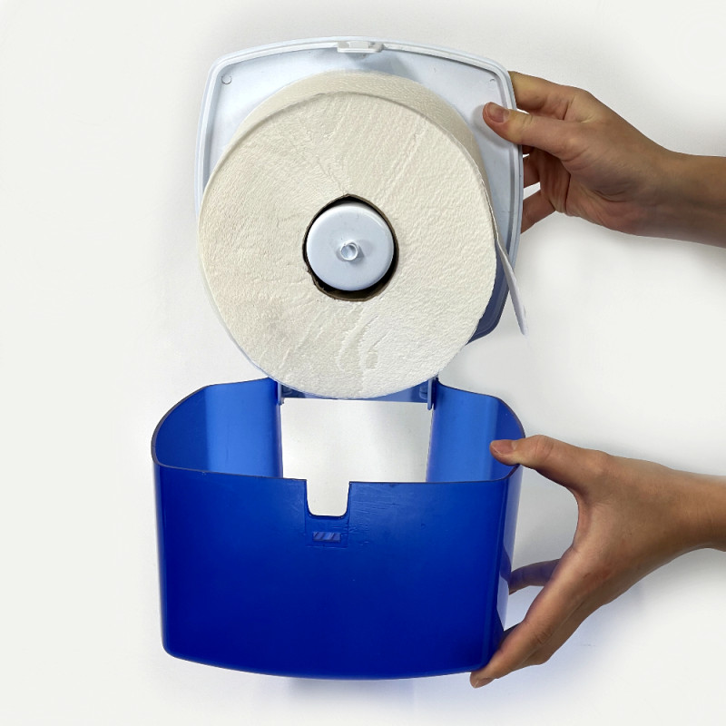 Диспенсер для туалетного паперу міні-джамбо, пластик, колір прозорий блакитний
