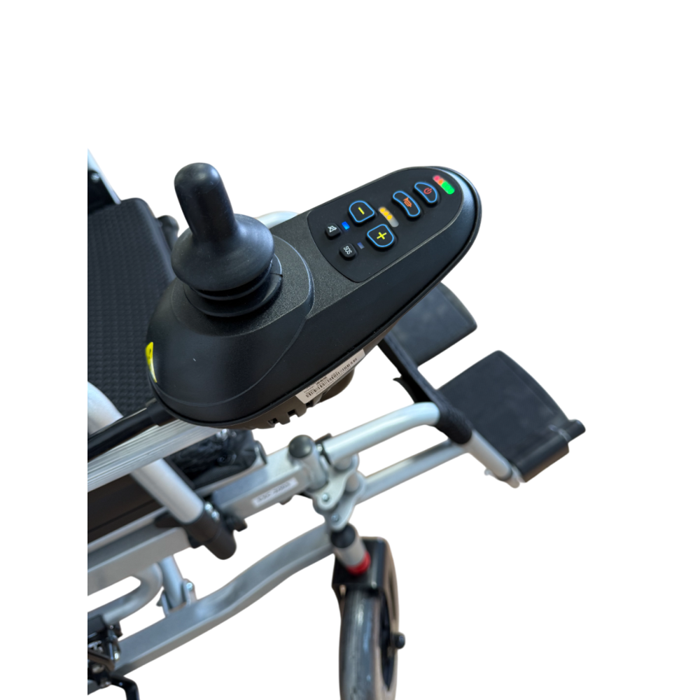 Відкидні підлокітники допомагають комфортно сідати і вставати з інвалідного візка. Довжина підлокітника: 37см. Також на ньому розміщений пульт управляння кріслом, його можна поставити на будь-яку сторону, під потреби та зручність користувача.