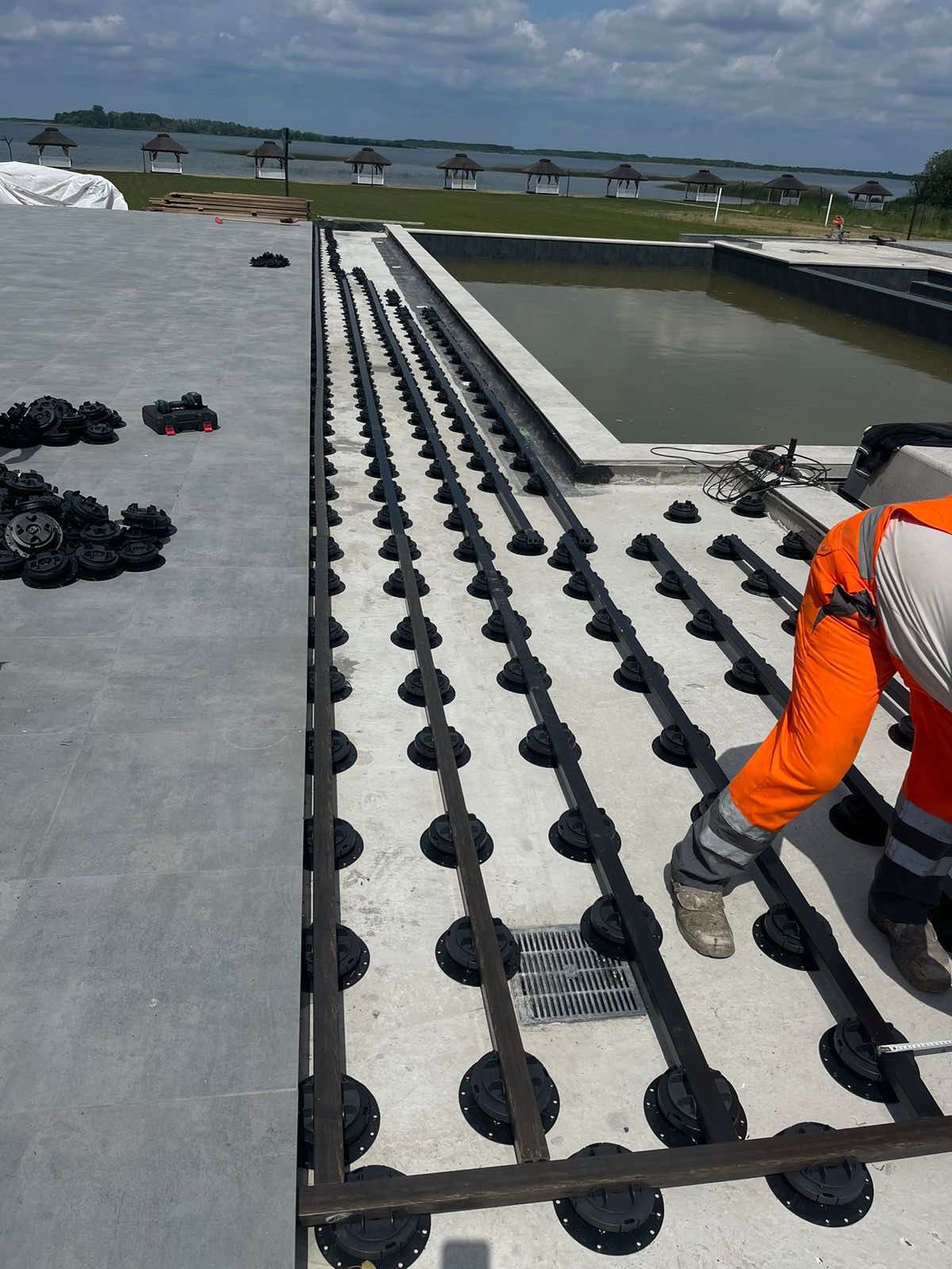 Решение идеально подходит для организации террас в зонах с повышенной влажностью. Сопротивления дают возможность монтажа без «мокрых» процессов.