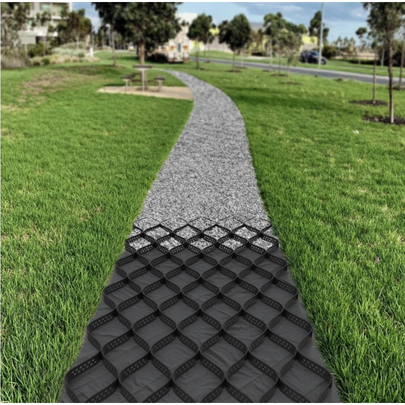 Материал производится из гибкого, но прочного полиэтилена высокой плотности (HDPE), благодаря чему георешетка способна адаптироваться к сложному рельефу местности. Она надежно фиксируется на неровных участках, склонах, откосах и других зонах с повышенным риском эрозии или оседания почвы.