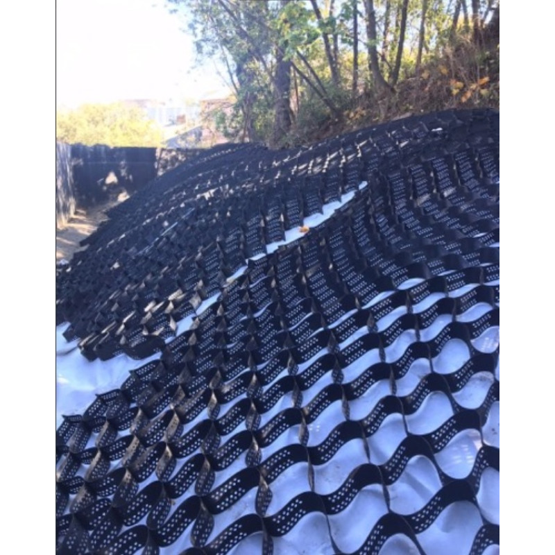 Материал производится из гибкого, но прочного полиэтилена высокой плотности (HDPE), благодаря чему георешетка способна адаптироваться к сложному рельефу местности. Она надежно фиксируется на неровных участках, склонах, откосах и других зонах с повышенным риском эрозии или оседания почвы.