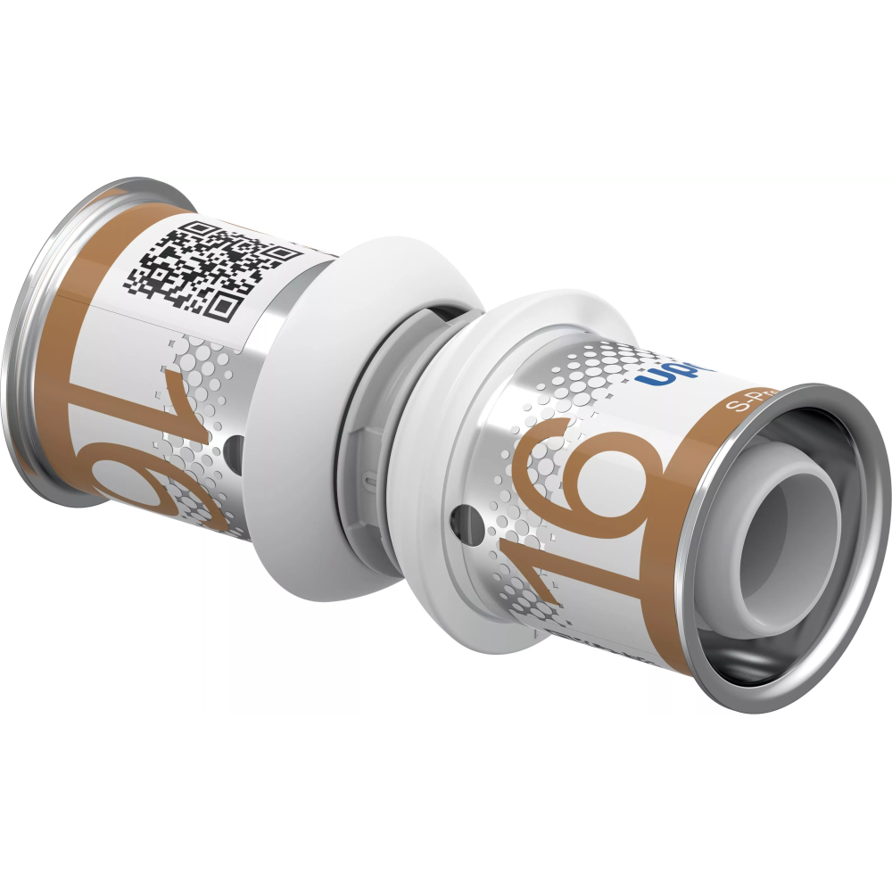 Uponor S-Press PPSU coupling is designed for reliable pipe connections in heating and water supply systems. Made of durable polyphenylsulfone (PPSU), equipped with a stainless steel press sleeve for fixation and sealing. The ideal solution for professional installation without the use of threads or soldering.
