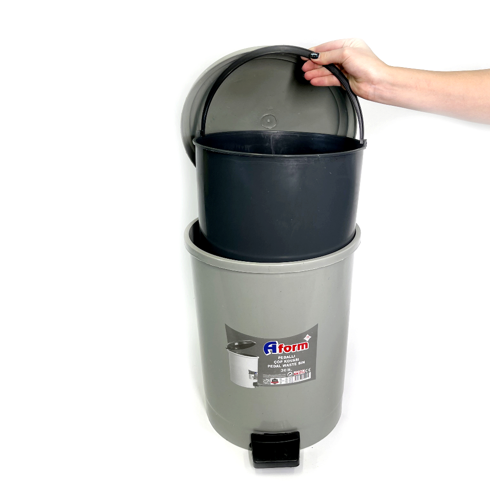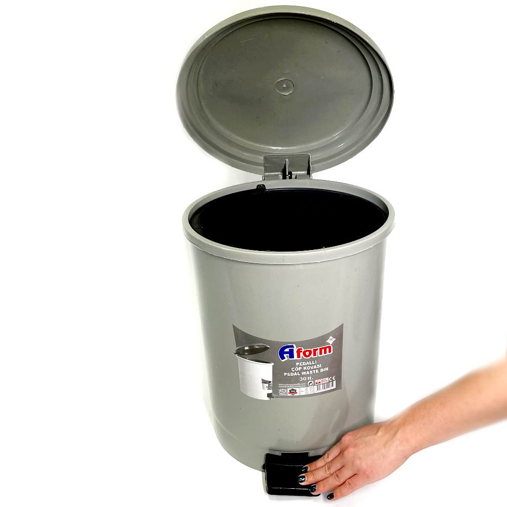 Мусорное ведро с педалью на 30 литров из пластика серое
