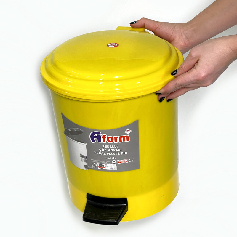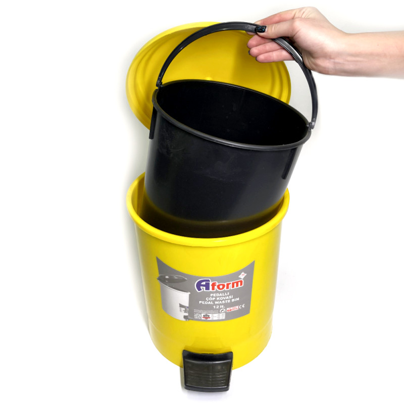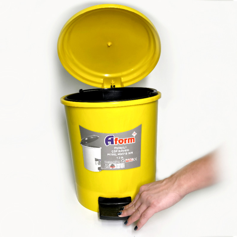 Контейнер для мусора с педалью 12л, пластик, желтый цвет