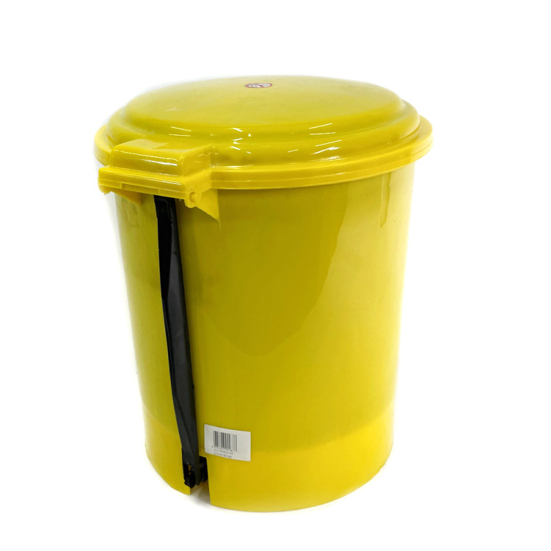 Мусорное ведро бытовое с педалью на 12 литров из пластика желтое.