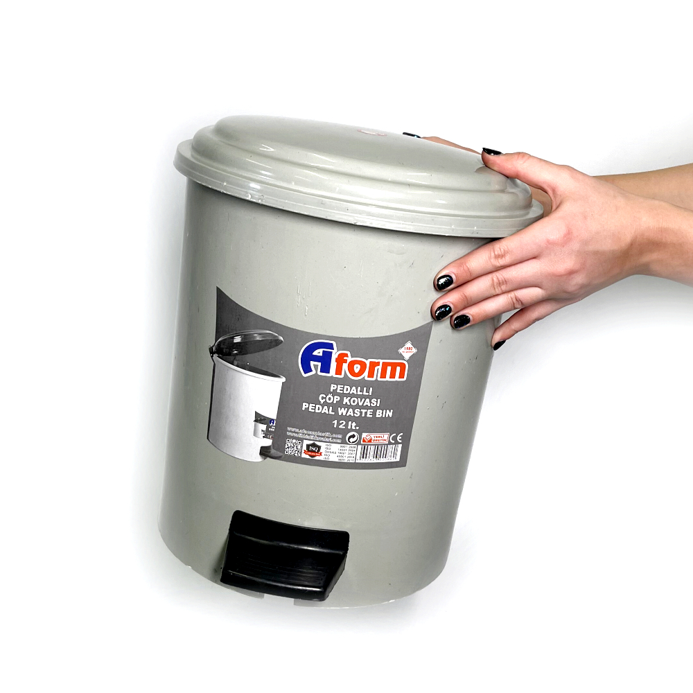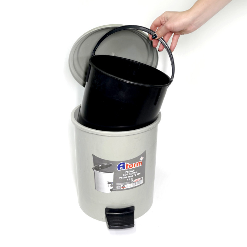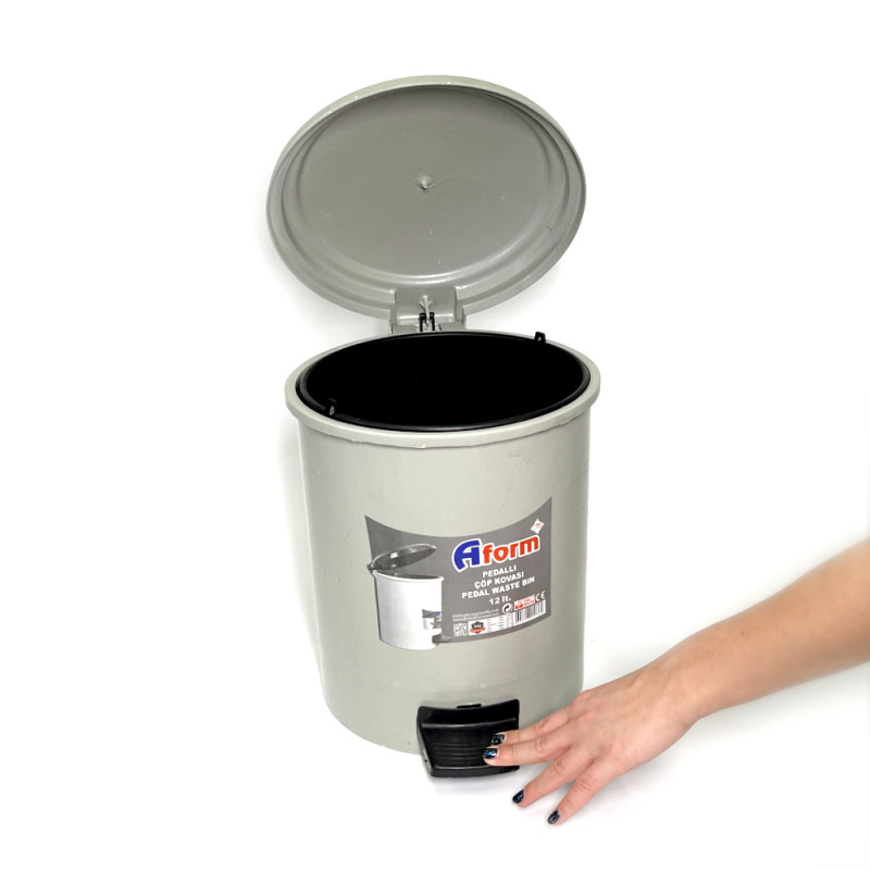 Контейнер для мусора с педалью 12л, пластиковый, цвет серый