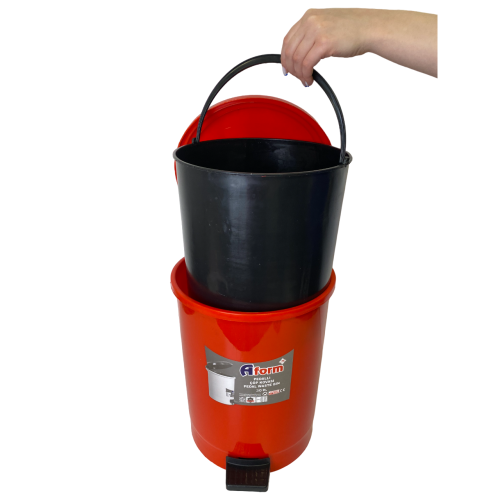 Мусорное ведро с педалью на 30 литров из пластика красное