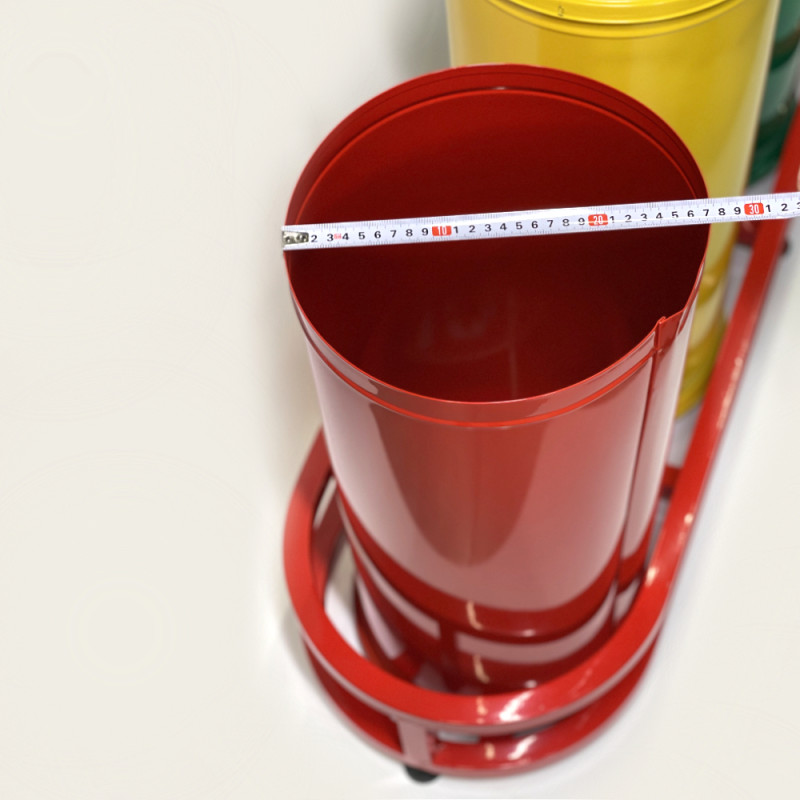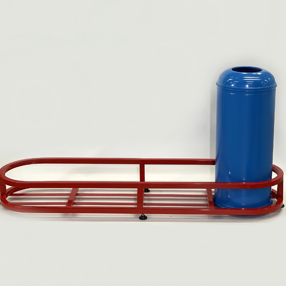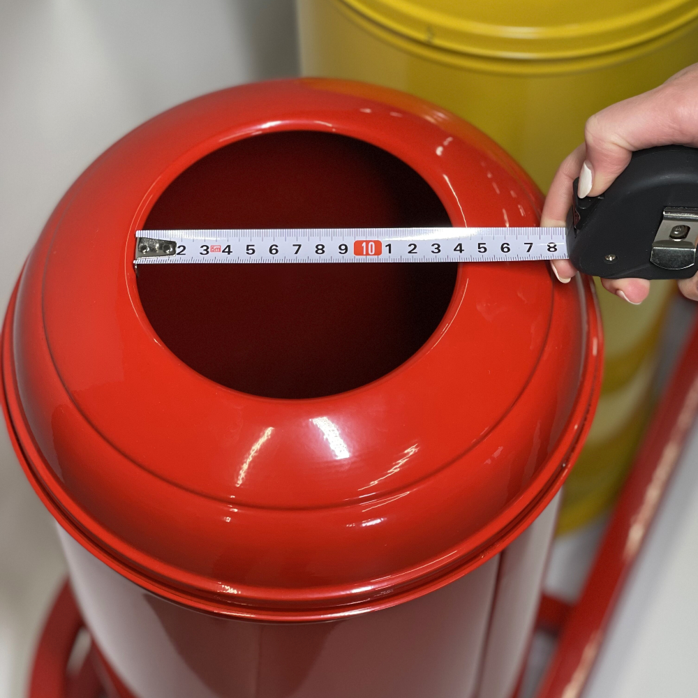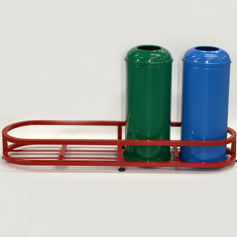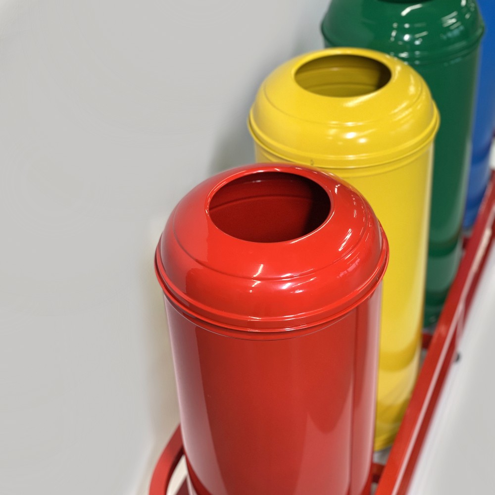 Набор контейнеров для сортировки мусора включает 4 ведра и рамку-держатель на ножках. Общая длина конструкции с рамой – 150 см. Высота каждого ведра – 65 см и диаметр – 27 см.