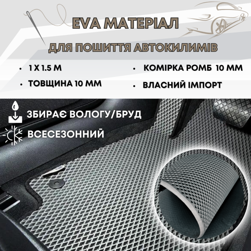 Листы EVA – изготовлены из этиленвинилацетата (современного полимерного материала). В нашем магазине Вы можете приобрести EVA листы-заготовки для пошива автомобильных ковриков. Такие коврики отличаются долговечностью, стойкостью к низким и высоким температурам, легкой очисткой.