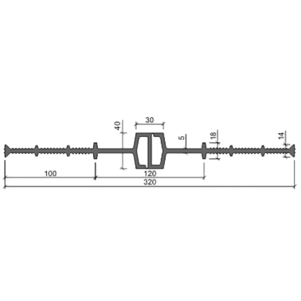 Гидроизоляционная шпонка внутренняя ВД 320 из EPDM для деформационных швов, рулон 20м.п.