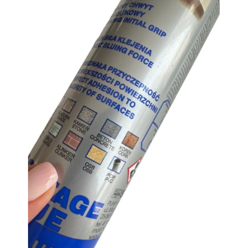 Он характеризуется прочным и быстрым начальным сцеплением, превосходной адгезией и высокой прочностью сцепления. Универсальность применения делает его очень универсальным продуктом и заменяет гвозди, саморезы и дюбеля. Подходит для внутреннего и наружного использования.