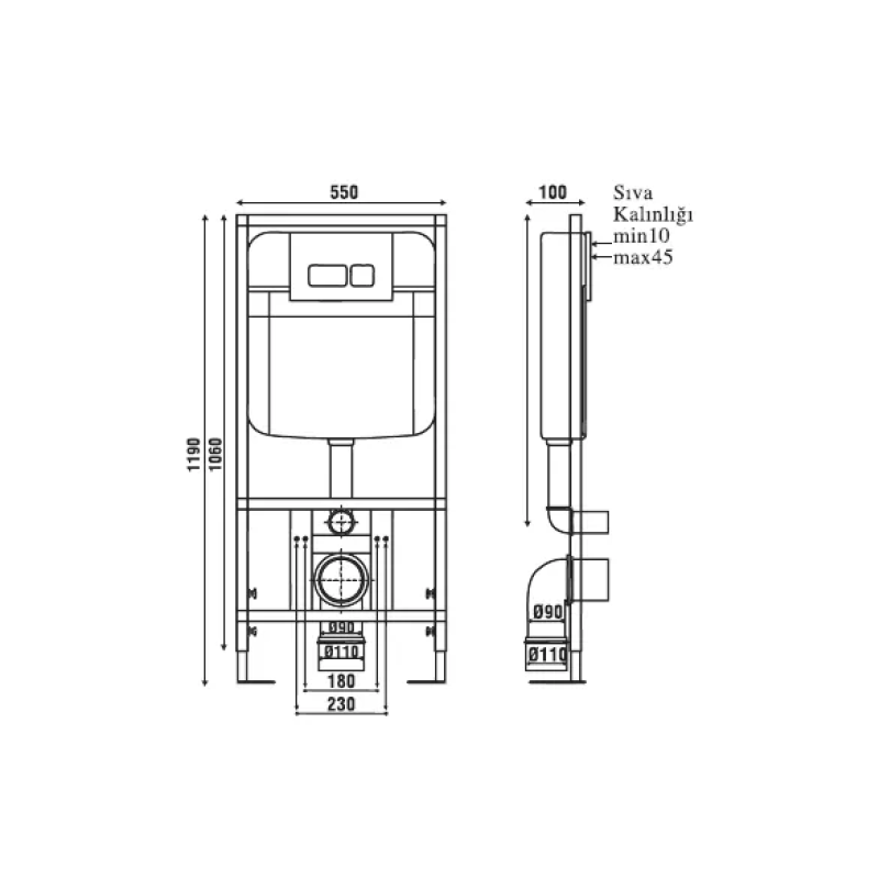 Стальные ножки инсталляции имеют регулировку от 0 – 13 см.