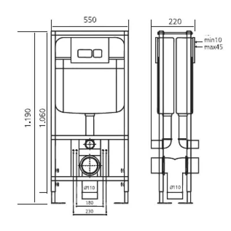 0028 Установка NKP для унитаза двухсторонняя, двойная рама