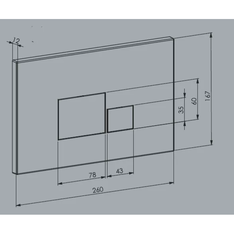 Она имеет две кнопки: для большого и малого слива. Кнопка для большого слива имеет размер: 78х60мм, а для малого слива 43х35мм.
