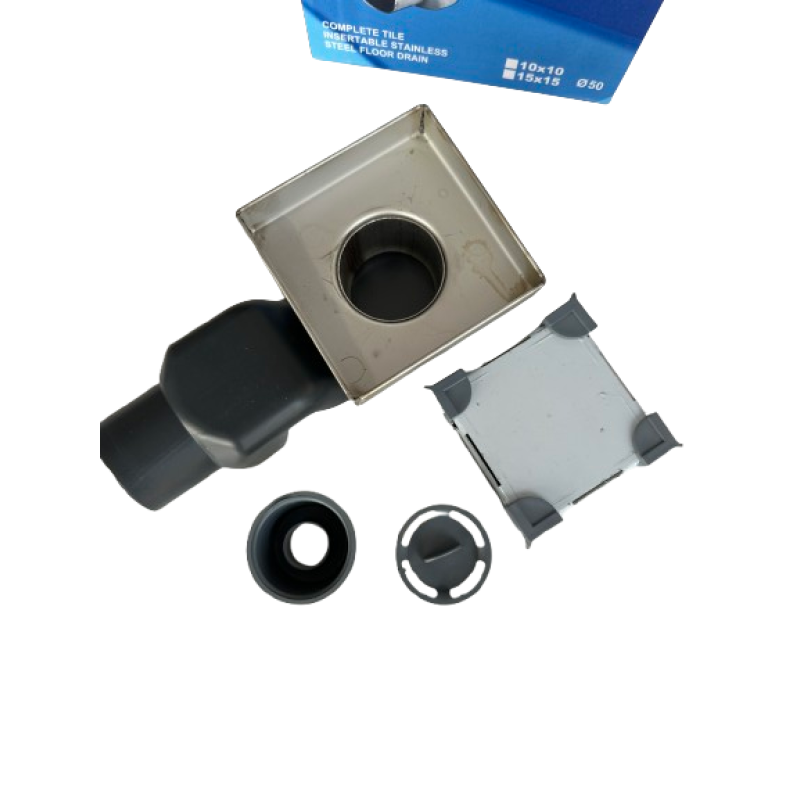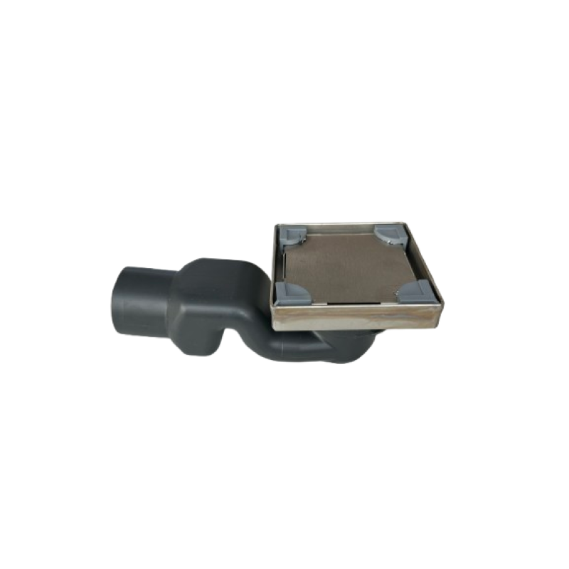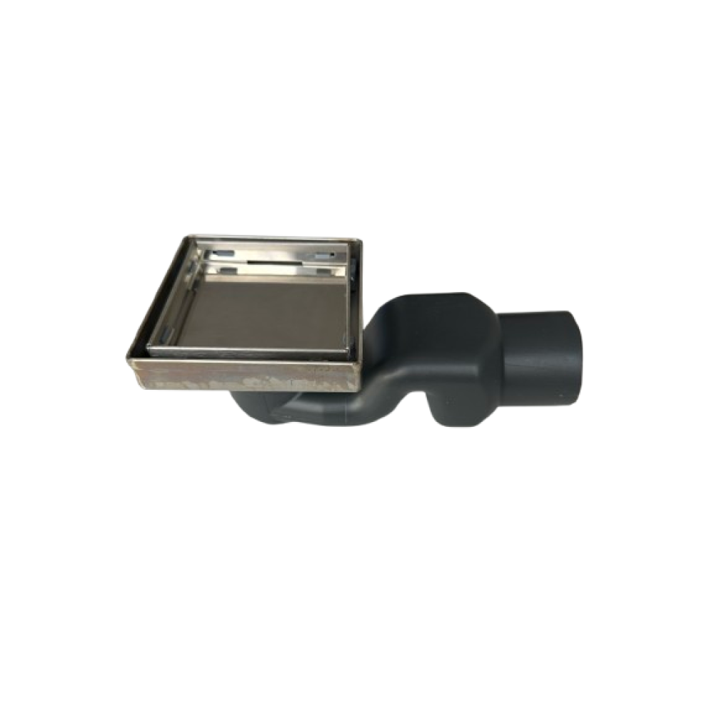 Трап с решеткой под плитку с нержавеющей решеткой и корпусом горизонтальный выход D50, 10*10 см