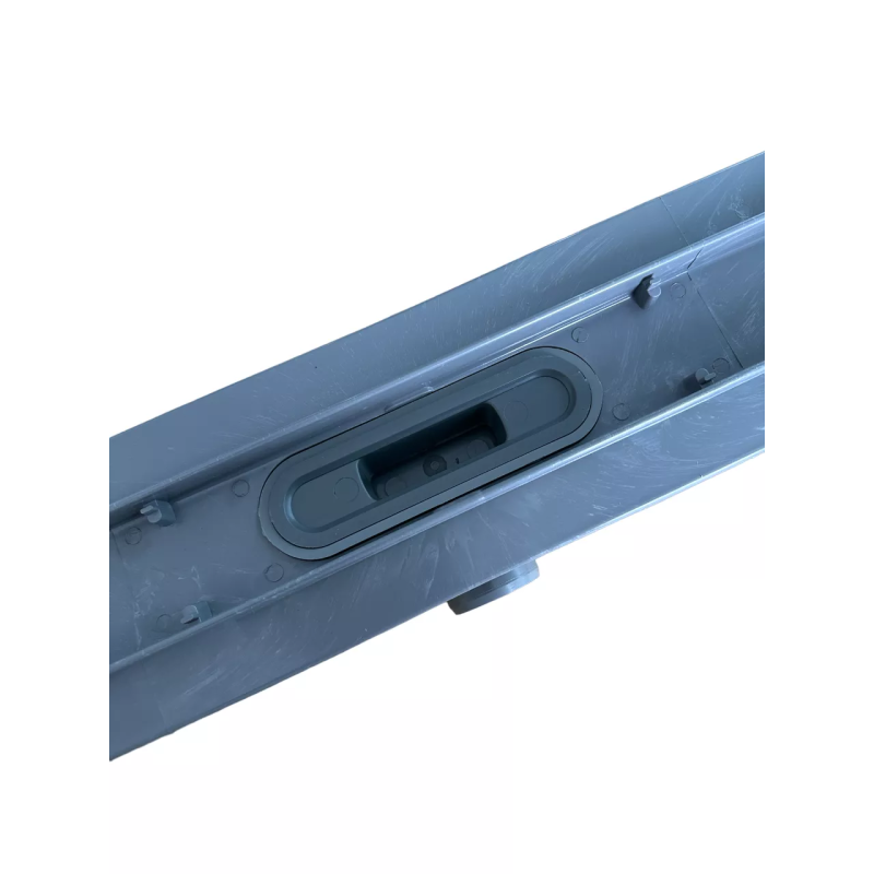 Декоративная решетка данной модели изготовлена из нержавеющей стали марки AISI 304. Толщина стали 1 мм, она выдерживает нагрузки до 300 кг. На решетку нанесена защитная ПЕ плёнка, снимать которую нужно после проведения облицовочных работ. Корпус лотка с фланцем, затвор и ножки изготовлены из прочного полипропилена.