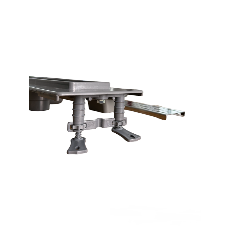 При установке душевой лоток легко можно подстроить под уровень стяжки за счет регулируемых по высоте ножек (от 72 до 102 мм). Пропускная способность изделия 32л/мин. Этого достаточно, чтобы вода не оставалась на поверхности пола, а уходила в канализацию. Лоток имеет горизонтальный выход с подключением на 50 трубу.