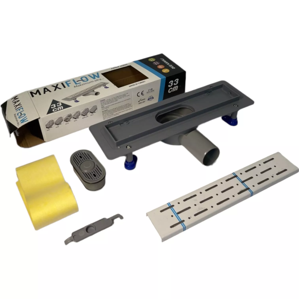 Сливной трап для душа с горизонтальным выходом, решетка "ДОЖДЬ" 33 см, Душевой канал с сухим затвором