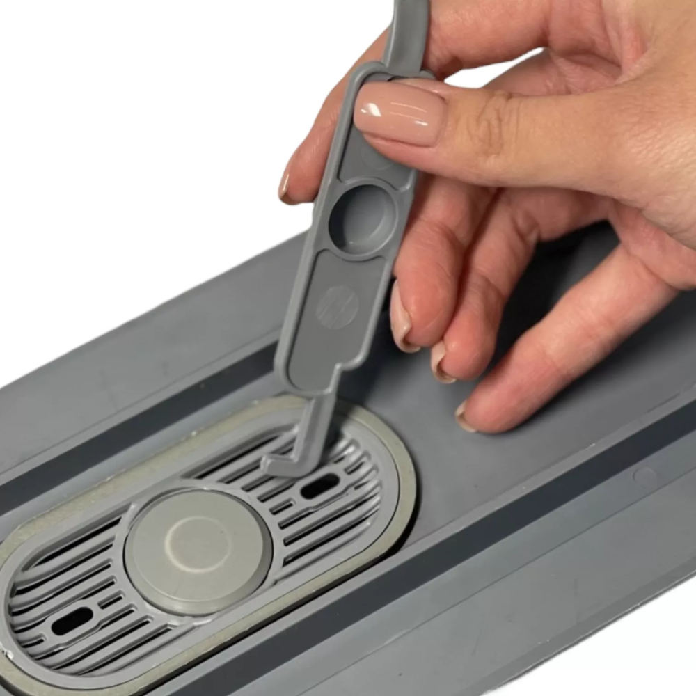 Еще одно ключевое преимущество данной модели это – сухой затвор. Он работает по принципу «хлопушки», которая открывается от давления сточной воды, и также легко закрывается после ее стока. Данный затвор точно не даст канализационным запахам попасть в помещение. При очистке стока от волос достаточно снять решетку с помощью крючка (идет в комплекте) и удалить мусор с желоба.