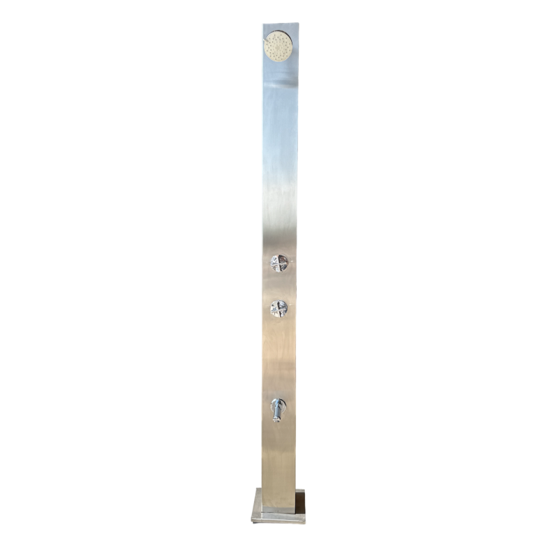 Душевая стойка для бассейна и пляжа – это стильная и функциональная система для приема душа и краном для мытья ног. Вот основные характеристики этой душевой системы: