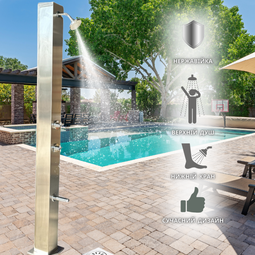 Эта душевая система является идеальным решением для бассейна или пляжа, обеспечивая качество, удобство и стиль.