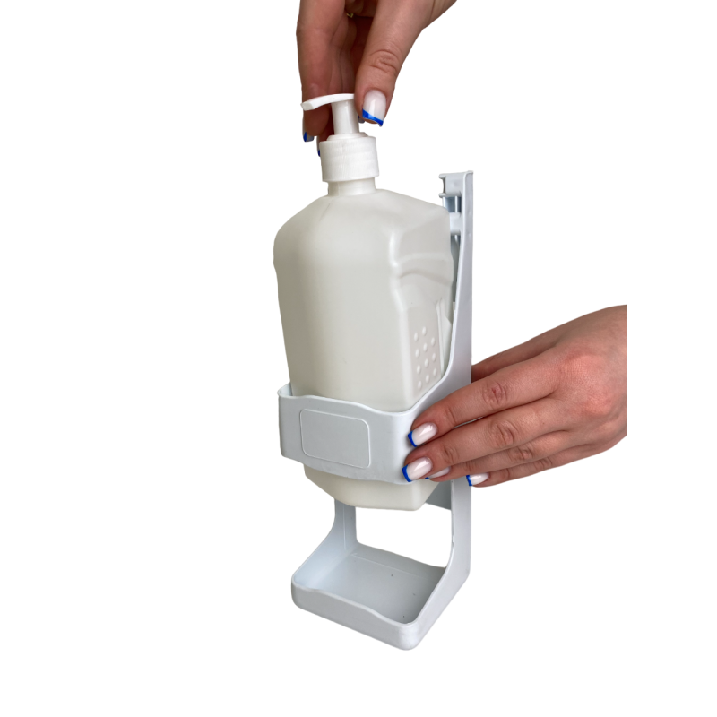 В комплект входит держатель и сам флакон (дозатор) объемом 1 л.