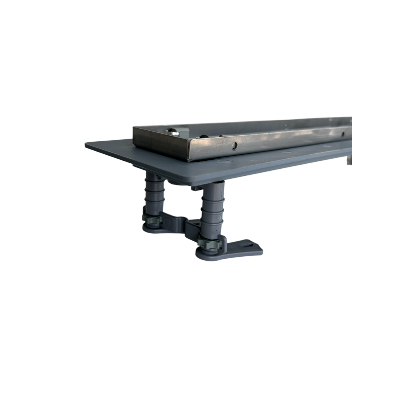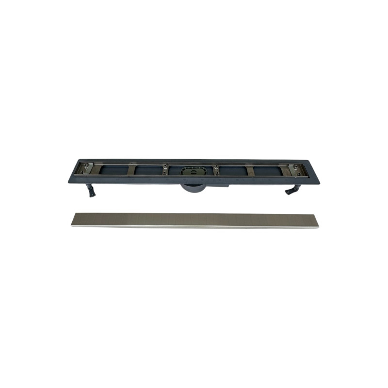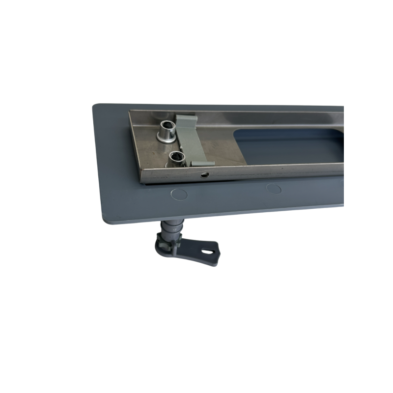 Ножки лотка имеют регулировку по высоте, что позволяют быстро и удобно установить желоб и выровнять его в горизонтальной плоскости. Канал имеет горизонтальный выход с подключением на 50 трубу. Поворотный сифон 360 градусов позволит легко подключить душевой лоток к трубке, несмотря на то, в какой стороне подводится труба.