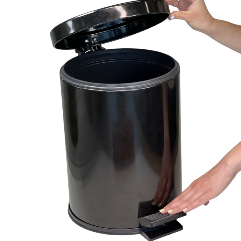 Вместительное и компактное мусорное ведро с педалью 12л в черном цвете – это компактное ведро, изготовленное из нержавеющей стали, которое можно использовать на кухне, в гостиной, в ванной комнате и т.д. Ведро изготовлено из нержавеющей глянцевой стали марки AISI 430. Ведро имеет прорезиненную педаль, которая позволяет бесконтактно выбрасывать мусор. Нижнее основание имеет резиновое уплотнение.