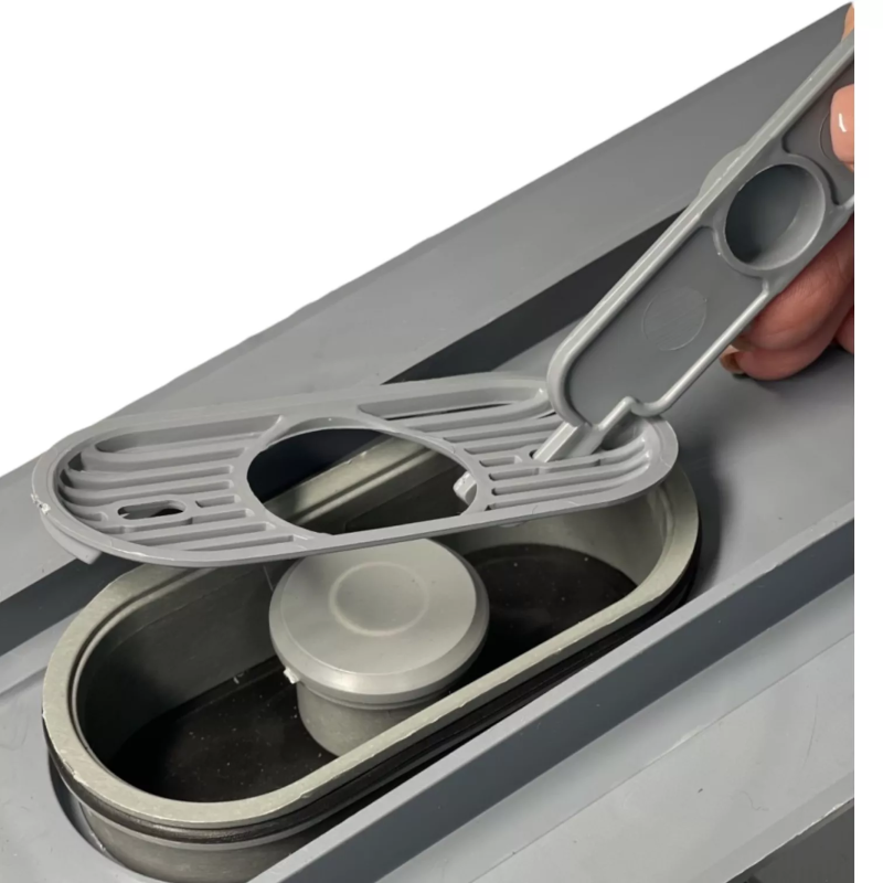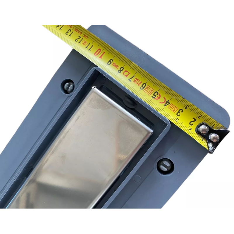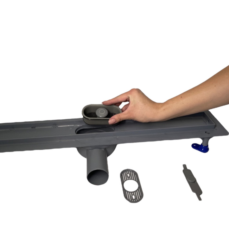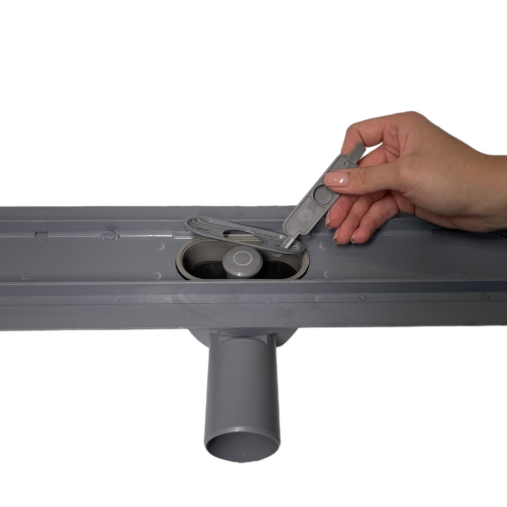 Внутри желоба установлен сухой затвор, который препятствует попаданию запахов в помещение. Он работает по принципу «хлопушки», которая открывается от давления сточной воды, и также легко закрывается после ее стока. Пропускная способность лотка 32 л/мин – это в 2-3 раза выше, чем подача воды даже с самой большой лейки. Если в сток лотка попали волосы или мелкий мусор, воспользуйтесь крючком (идет в комплекте) для того чтобы снять решетку и удалить загрязнения.
