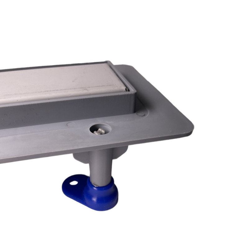 Декоративная решетка данного лотка изготовлена из нержавеющей стали марки AISI 304. Толщина стали 1мм. На нее нанесена защитная полиэтиленовая пленка, снимать которую нужно после окончания облицовочных работ. Корпус, затвор, ножки и горизонтальный фланец изготовлены из стойкого к перепадам температур пластика (от -30 до +75 °C). Низкая монтажная высота лотка подойдет для установки практически в любом помещении (регулировка ножек от 55-85мм). Фланец в конструкции позволяет надежно нанести гидроизоляцию вокруг решетки.