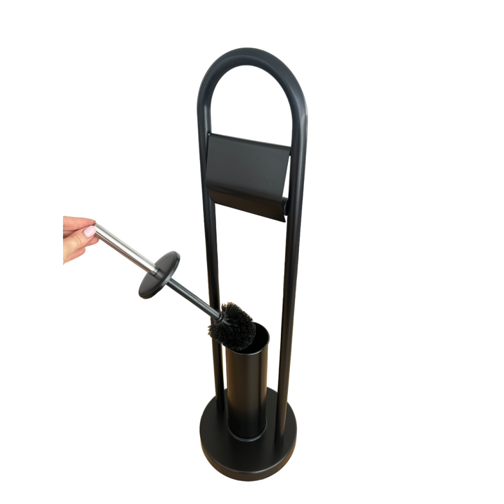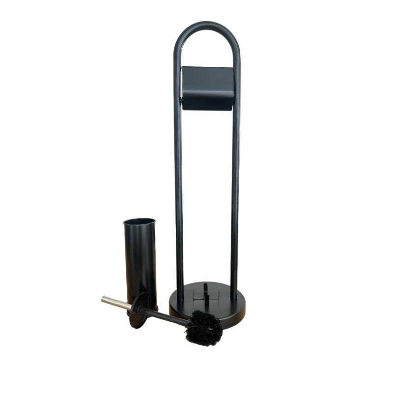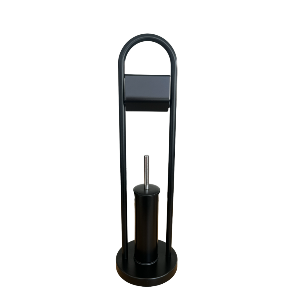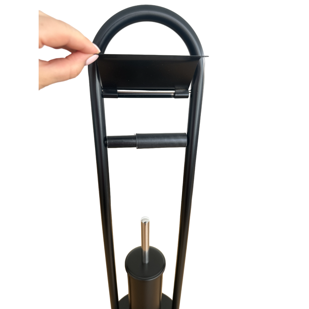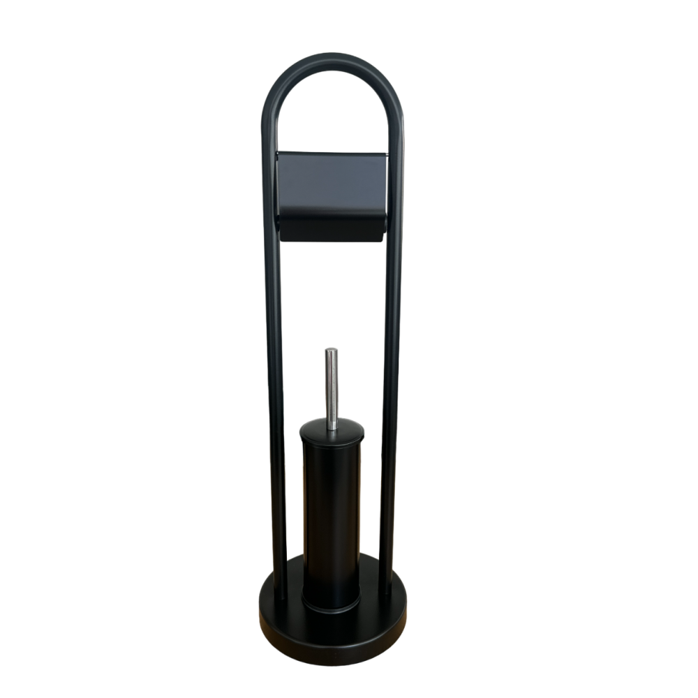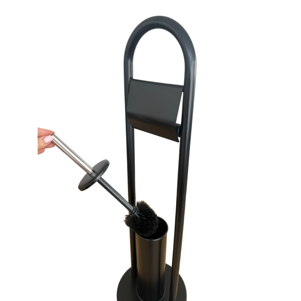 Стойка из нержавеющей стали с держателем для бумаги и ершиком, 73см высотой, цвет черный