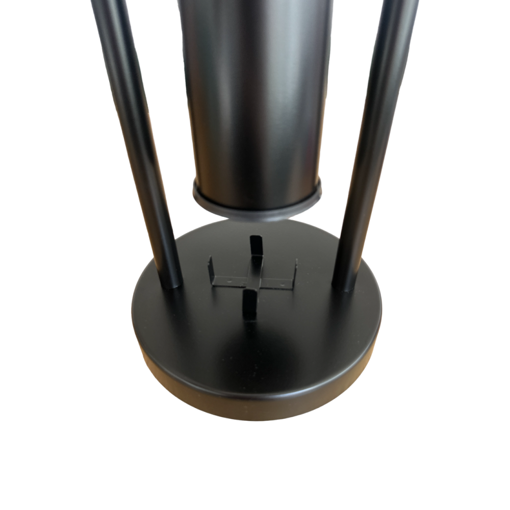 Устойчивая приходит в коробке уже в собранном виде. Ее высота составляет 73 см. Подставка имеет круглую форму и отверстие под стакан для ершика. Это удобно, ведь при перемещении стойки колба не упадет. А саму колбу-стакан можно легко вынуть и помыть. Ершик представляет собой съемную щетку с синтетическим ворсом и ручку из нержавеющей стали.