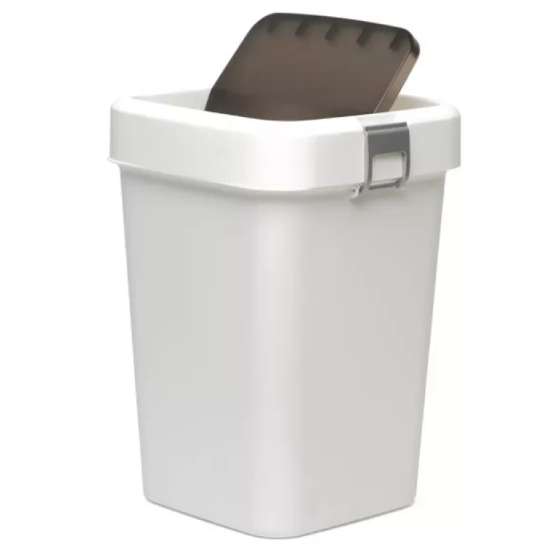 Мусорное ведро на 18л пластиковое белое, с поворотной крышкой 27,5*27,5*41см