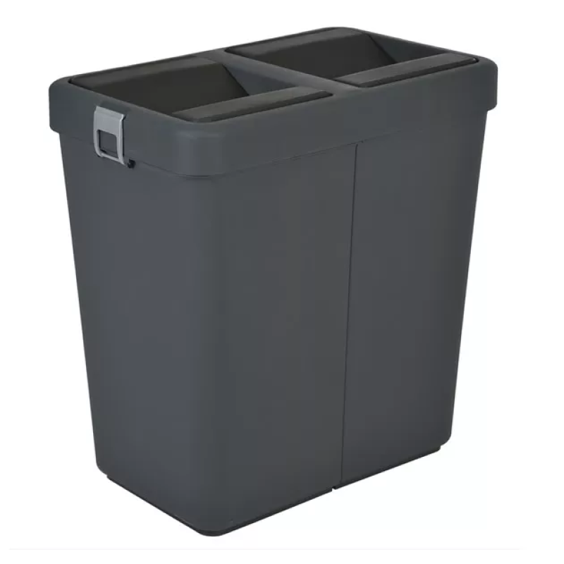Мусорное ведро двойное 40+40л пластиковое антрацит, с поворотной крышкой 55*35,5*59см