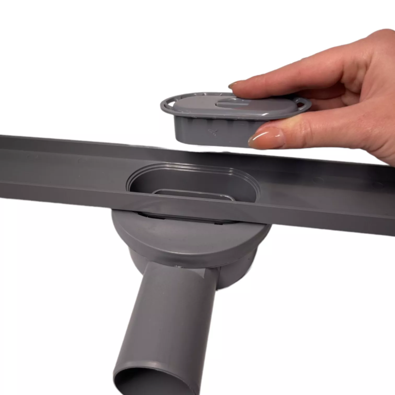 Гідрозатвор усередині жолоба перешкоджає проникненню запахів у приміщення. Лоток легко можна самостійно очистити аж до стічної труби від дрібного сміття і волосся, знявши грати і затвор.