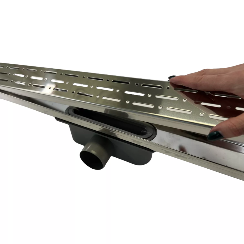 Подвійний гідрозатвор усередині жолоба перешкоджає проникненню запахів у приміщення. Лоток легко можна самостійно очистити аж до стічної труби від дрібного сміття і волосся, знявши решітку і затвор.