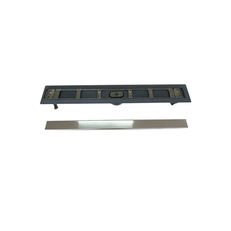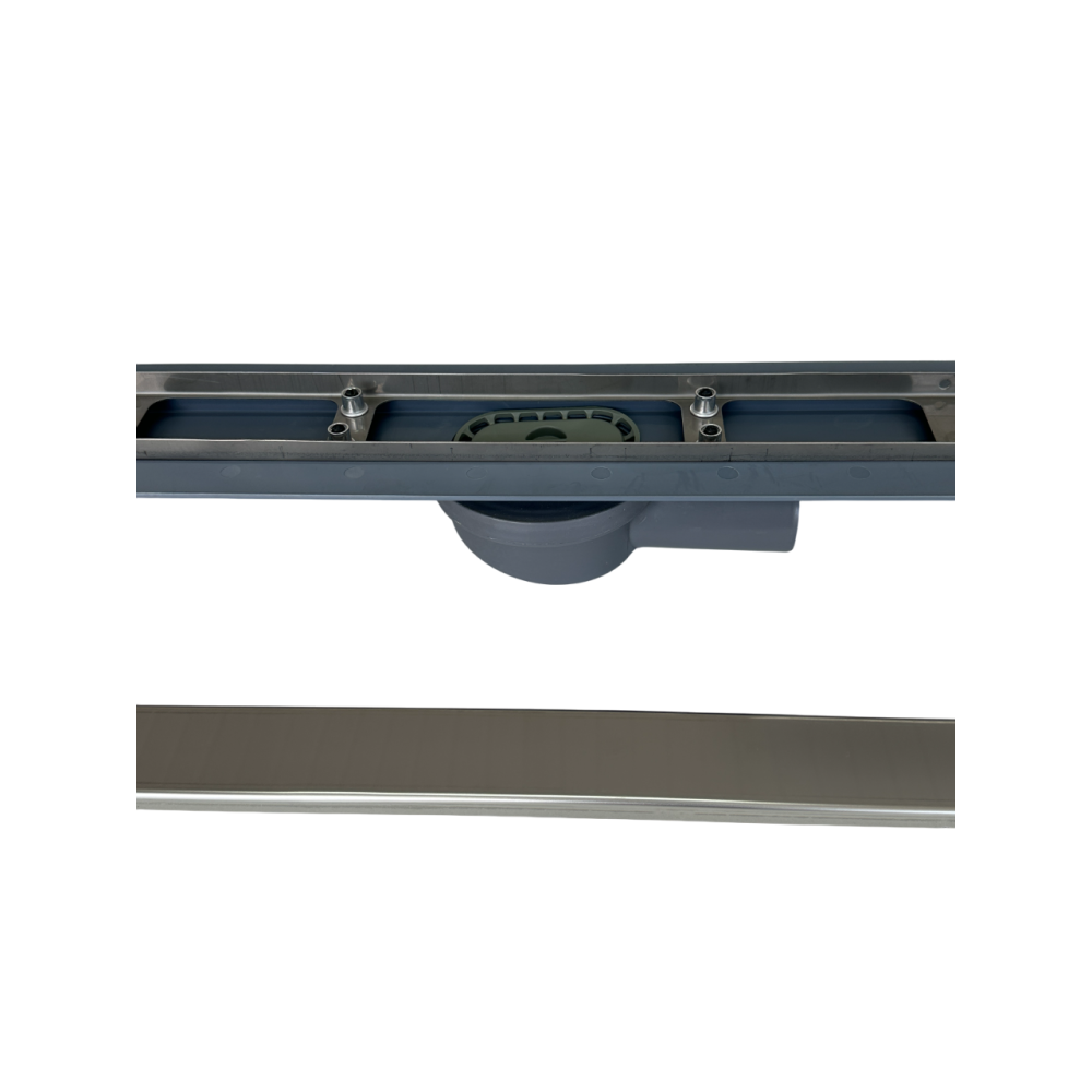 Ніжки лотка мають регулювання по висоті, що дозволяють швидко і зручно встановити жолоб і вирівняти його в горизонтальній площині. Канал має горизонтальний вихід з підключенням на 50 трубу. Поворотний сифон 360 градусів дозволить легко підключити душовий лоток до трубки, незважаючи на те, в якій стороні підводиться труба.