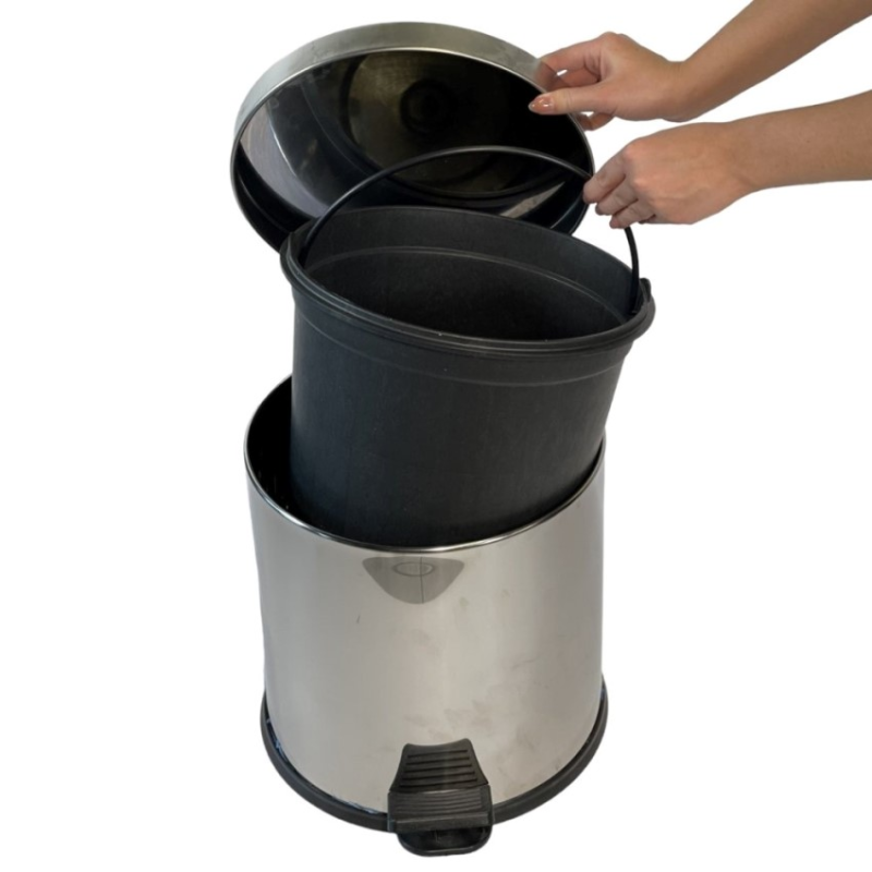 Містке відро для сміття з педаллю 20 л – це компактне відро, виготовлене з нержавіючої сталі, яке можна використовувати на кухні, у вітальні, у ванній кімнаті тощо. Відро виготовлене з глянсової нержавіючої сталі марки AISI 430. Відро має прогумовану педаль, яка дозволяє безконтактно викидати сміття. Нижня основа має гумове ущільнення.