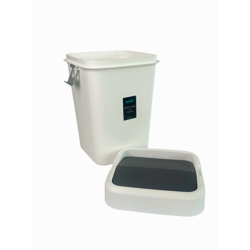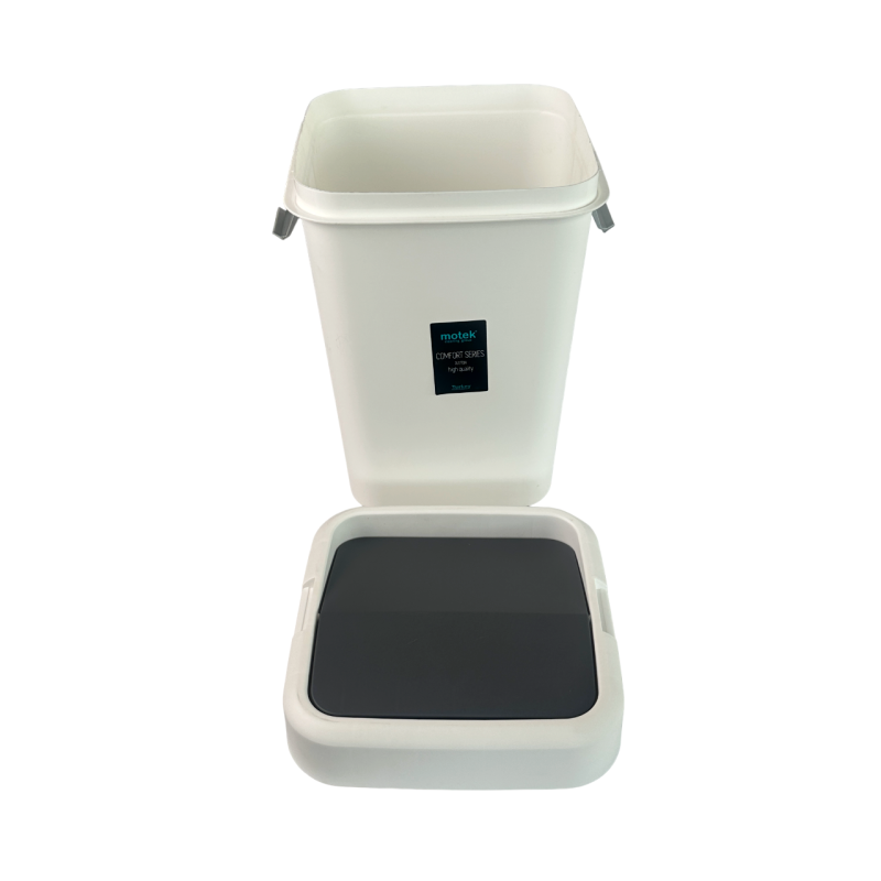 Кришка, що обертається на 180°, забезпечує комфортне та гігієнічне користування: неприємні запахи не поширюються, а сміття можна викидати без дотику до самого відра. Легке натискання — і кришка відкривається, після чого автоматично повертається на місце.