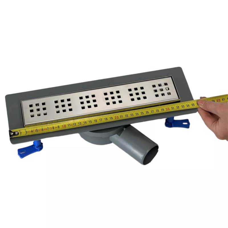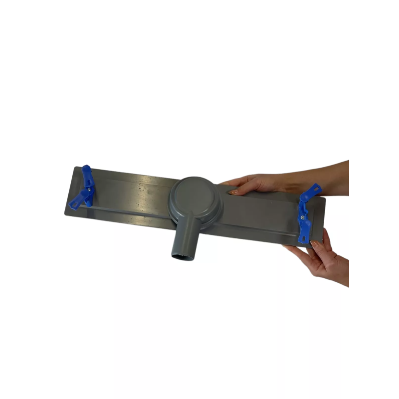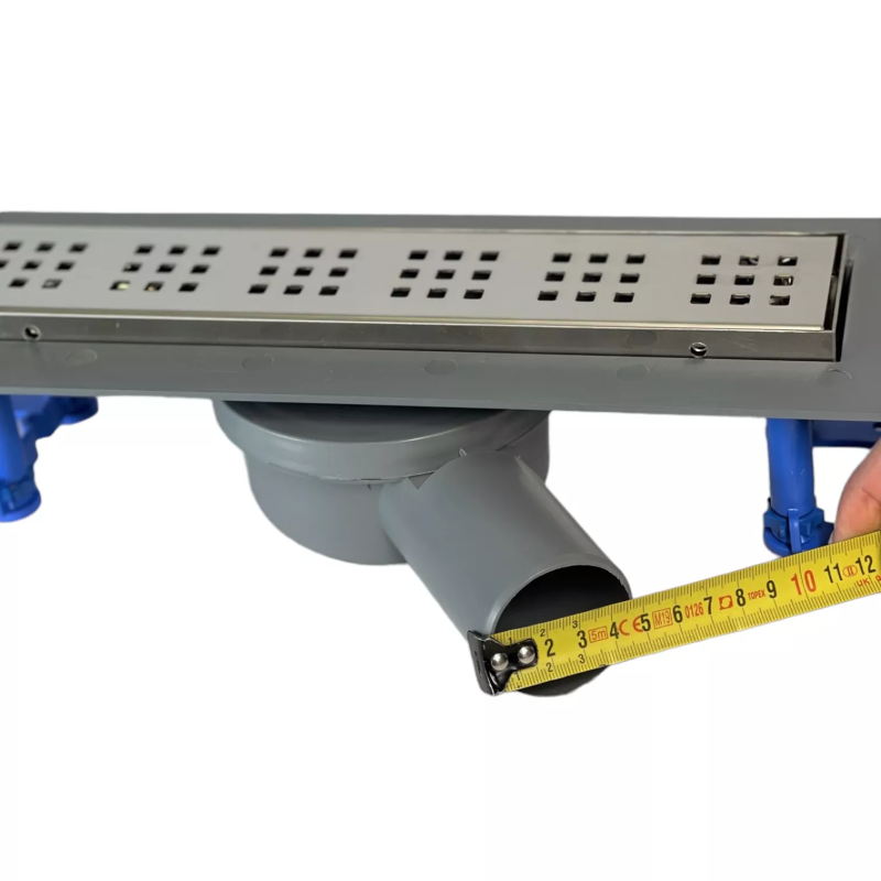 Ніжки лотка мають регулювання по висоті, що дозволяють швидко і зручно встановити жолоб і вирівняти його в горизонтальній площині. Канал має горизонтальний вихід з підключенням на 50 трубу. Поворотний сифон 3600 дозволить легко підключити душовий лоток до трубки, незважаючи на те, в якій стороні підводиться труба.