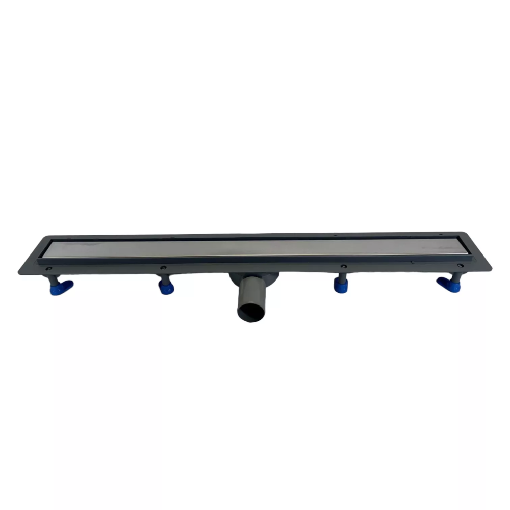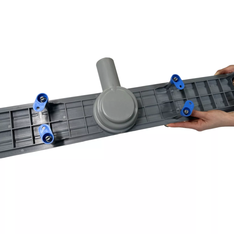 Декоративна решітка даного лотка виготовлена з нержавіючої сталі марки AISI 304. Товщина сталі 1мм. На неї нанесена захисна поліетиленова плівка, знімати яку потрібно після закінчення облицювальних робіт. Корпус, затвор, ніжки і горизонтальний фланець виготовлені зі стійкого до перепадів температур пластика (від -30 до 75 °C). Низька монтажна висота лотка підійде для установки практично в будь-якому приміщенні (регулювання ніжок від 55-85мм). Фланець в конструкції дозволяє надійно нанести гідроізоляцію навколо решітки.