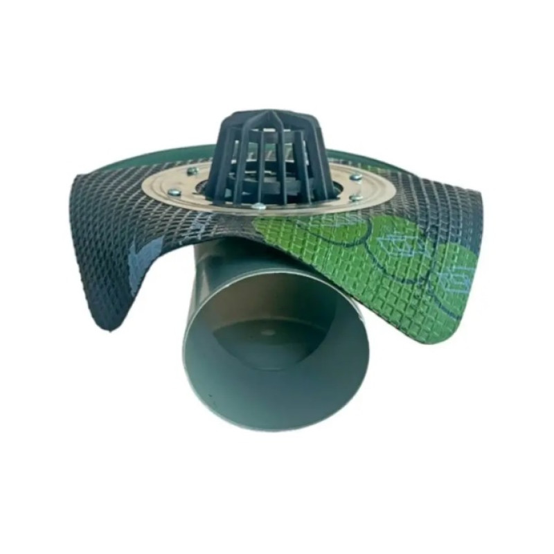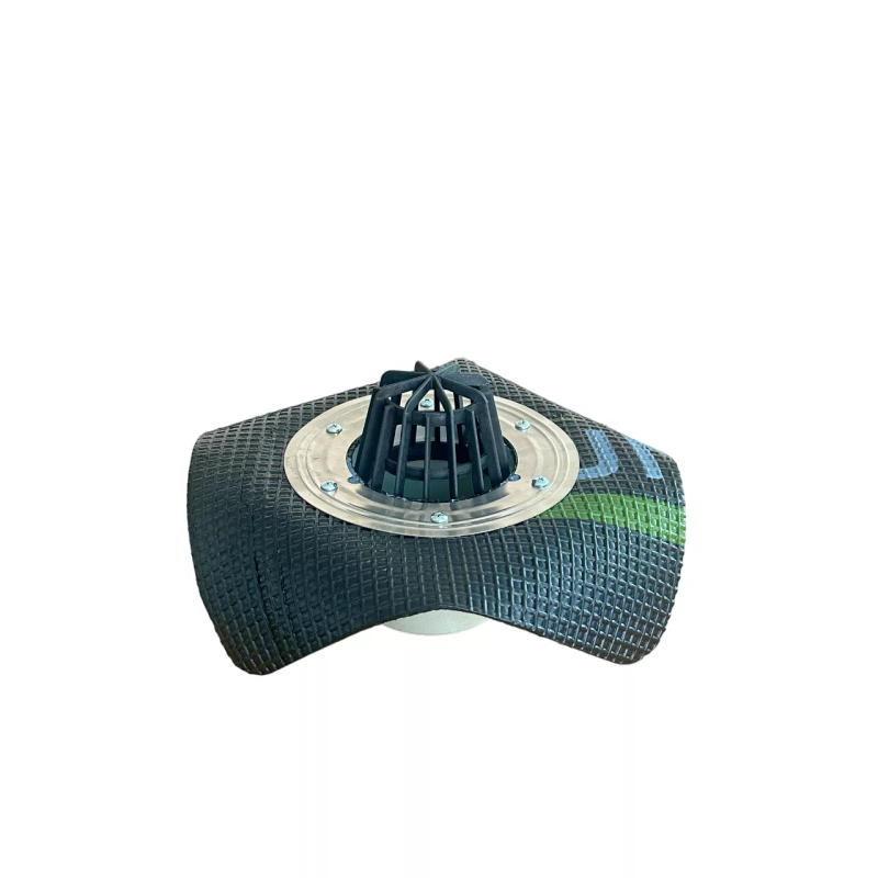 Воронка кровельная с битумным фартуком предназначена для горизонтального подключения к канализационной трубе диаметром 110 мм. Воронка идеально подходит для кровли рубероидом или битумом. Воронковая мембрана припаивается к битумной мембране кровли, обеспечивая надежную гидроизоляцию.