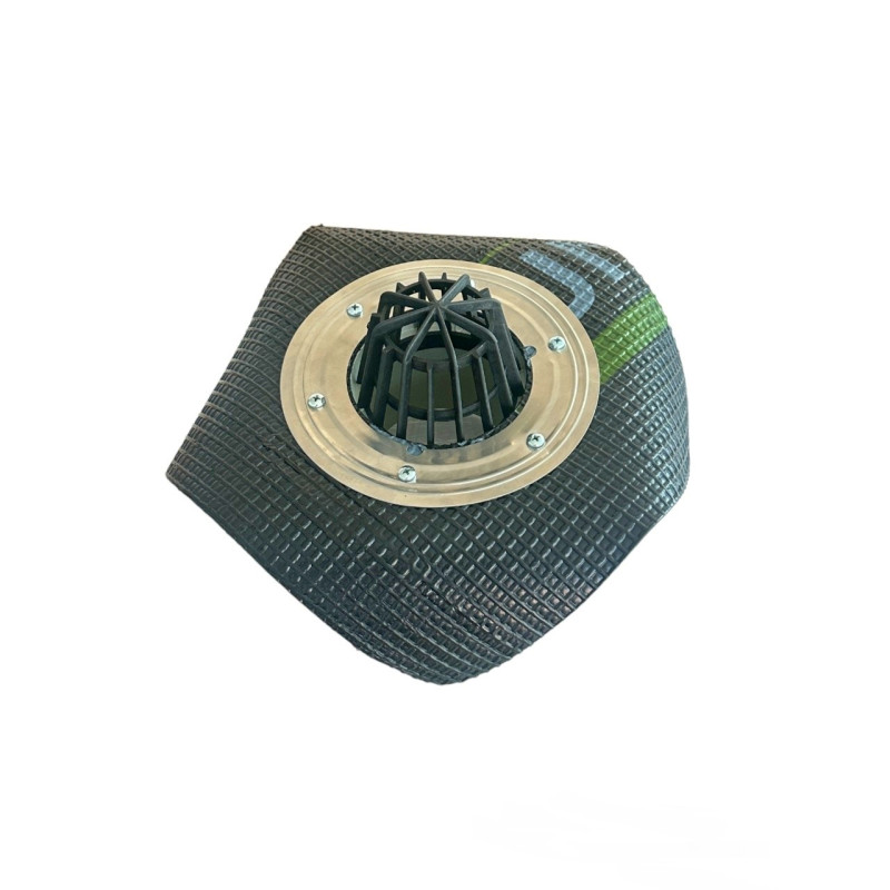 Кровельная воронка с битумным фартуком предназначена для вертикального подключения к канализационной трубе диаметром 110мм. Воронка идеально подходит для кровли с рубероидом или битумом. Мембрана воронки напаивается до битумной мембраны кровли, обеспечивая надежную гидроизоляцию.