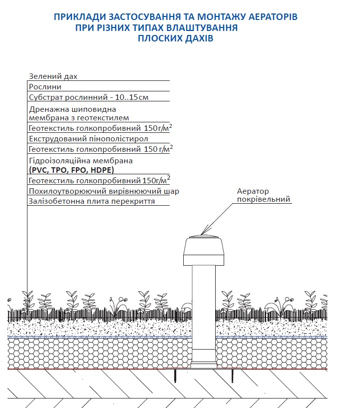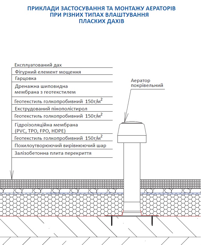 Устанавливают аэраторы на плоских кровлях равномерно по всей площади в местах стыков теплоизоляционных плит, а именно в самых высоких точках.
